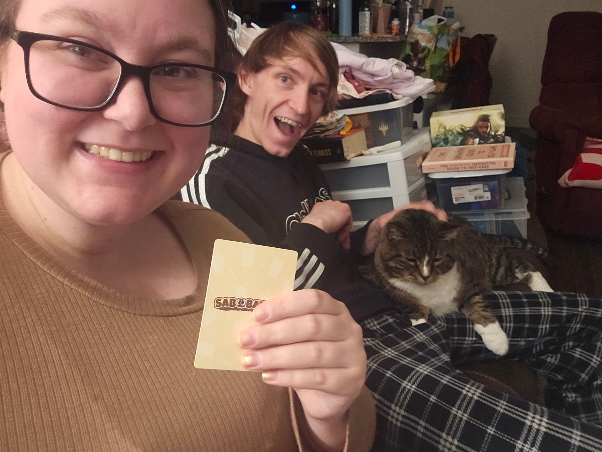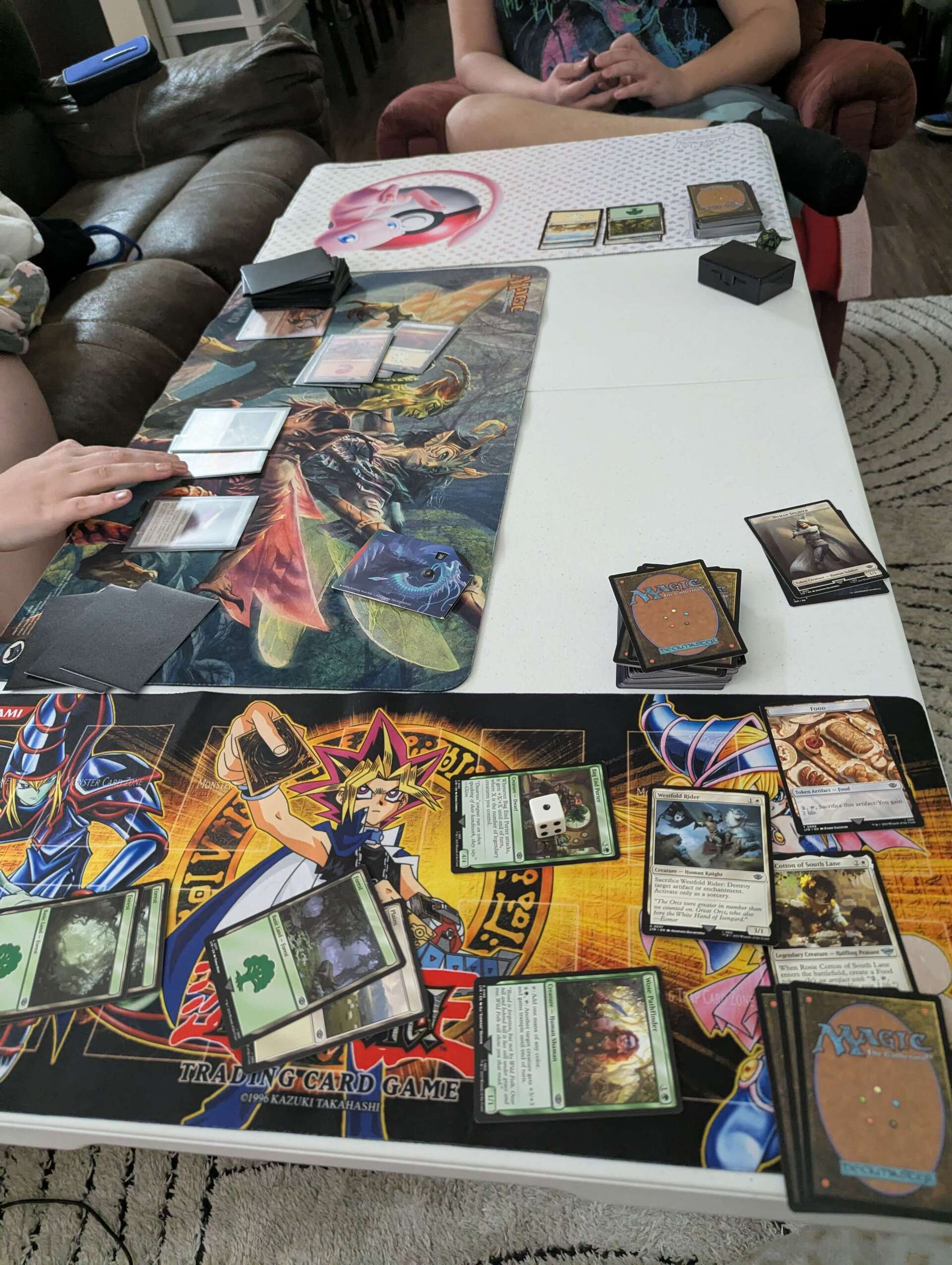 We’re big Magic: The Gathering fans and play Commander often. We buy a lot of the preconstructed Commander decks from our local game shop, and battle it out with them. We are very into the Lord of The Rings decks right now.