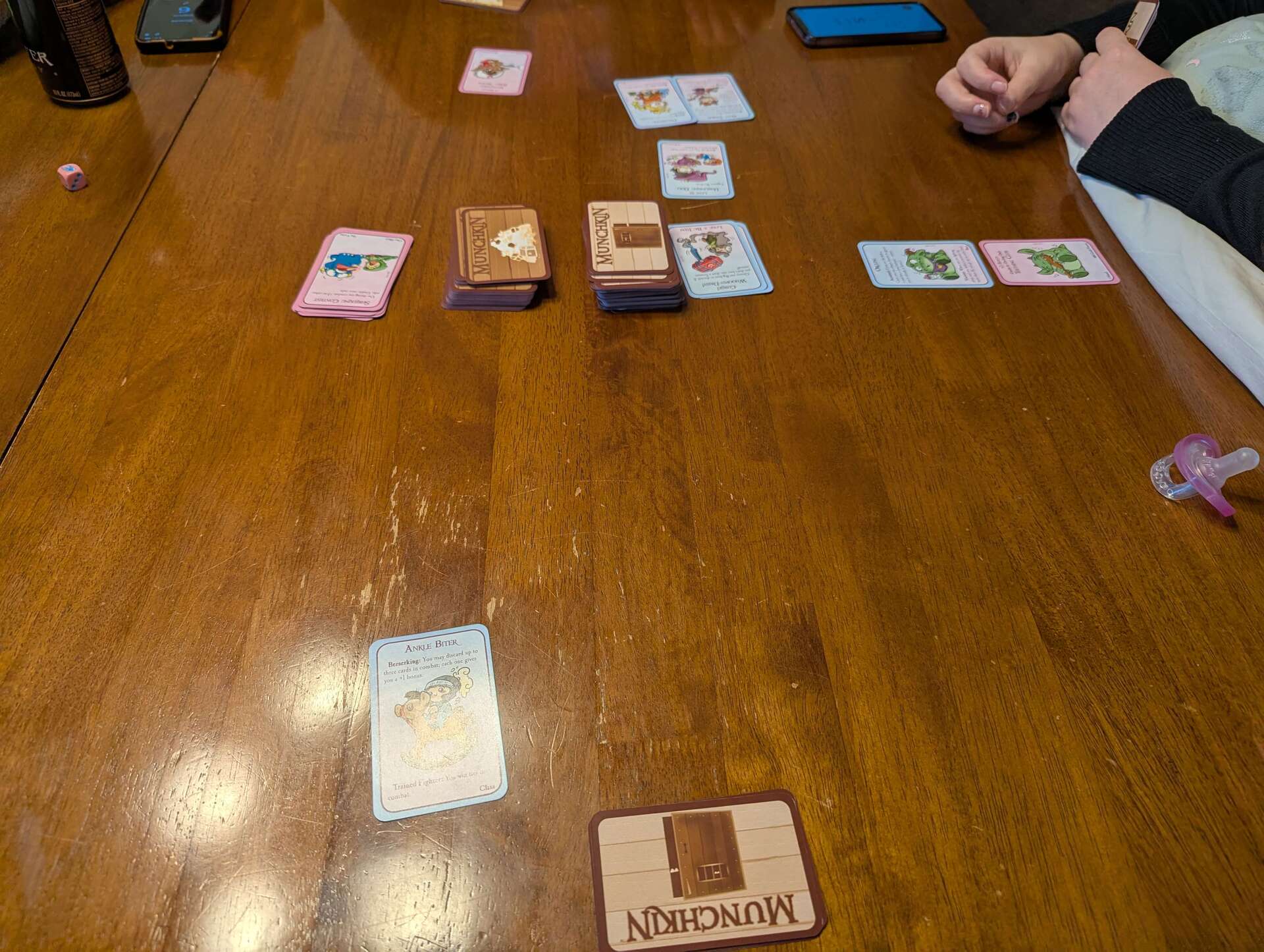 We don’t own this version of Munchkin, so we play it when we visit Miles’s brother. Since we just had our first baby, it makes this game even more appealing! There’s even a card that gives the monster extra health if a real baby is in the room!